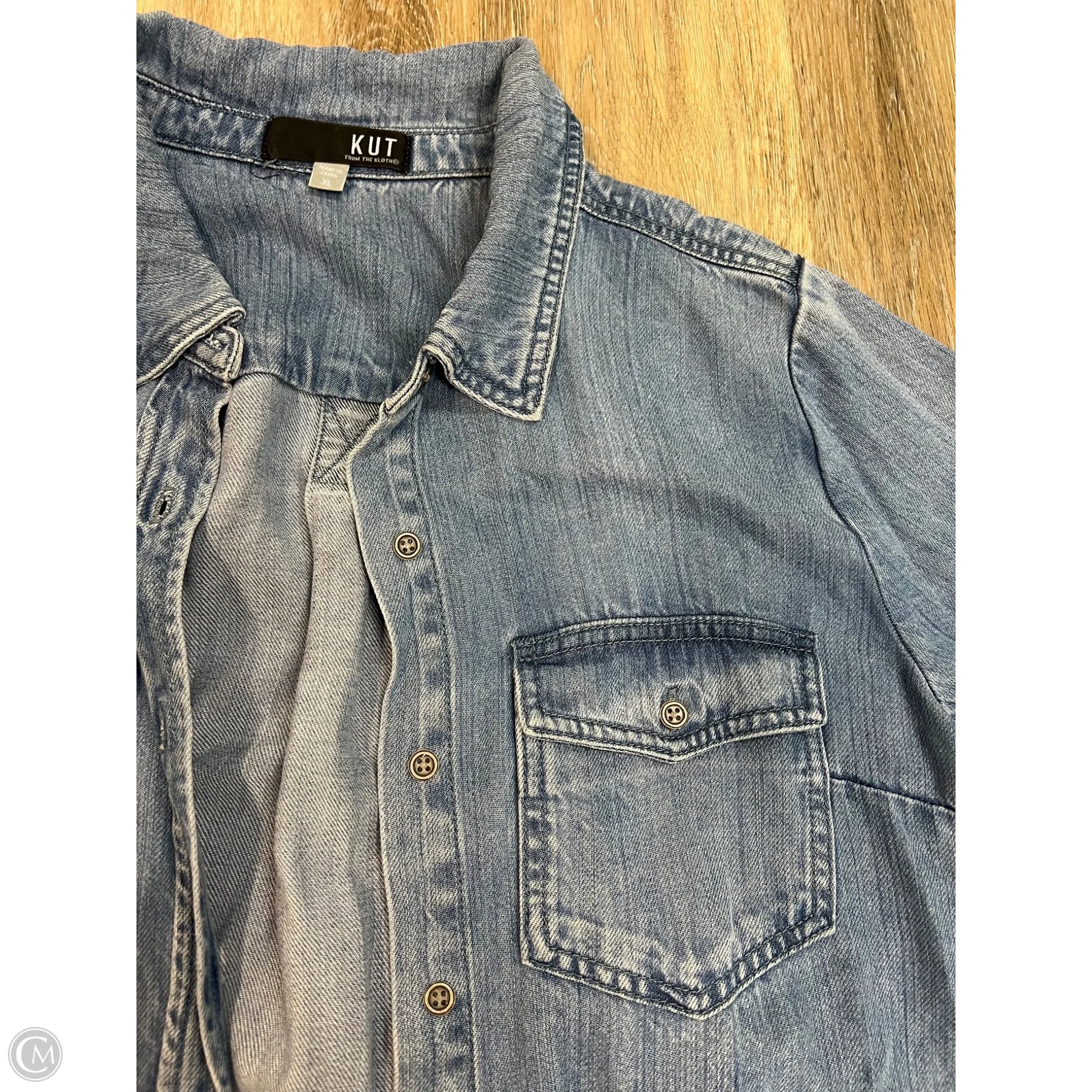 Blouse Long Sleeve By Kut In Blue Denim, Size: Xl