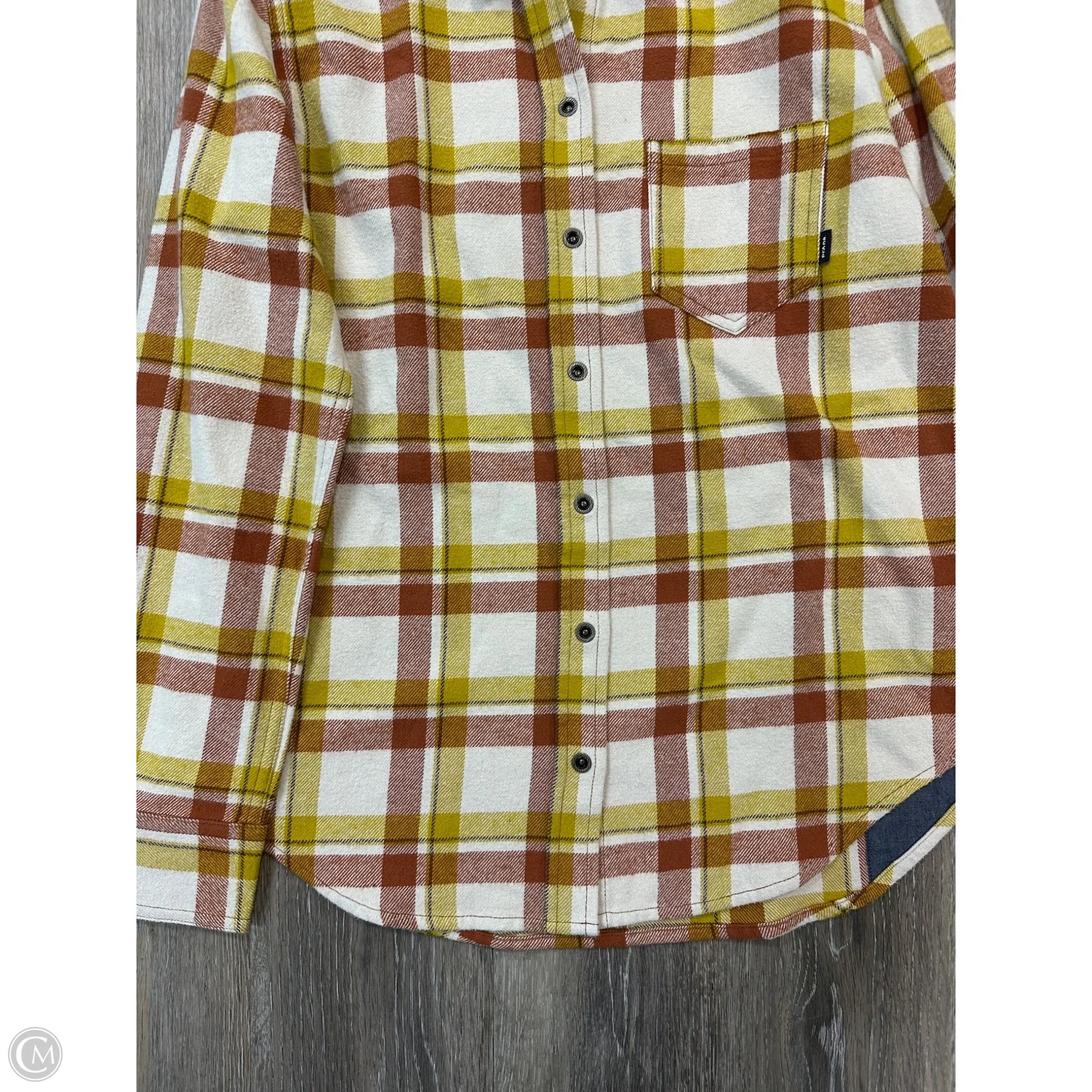 Blouse Long Sleeve By Prana In Plaid Pattern, Size: S