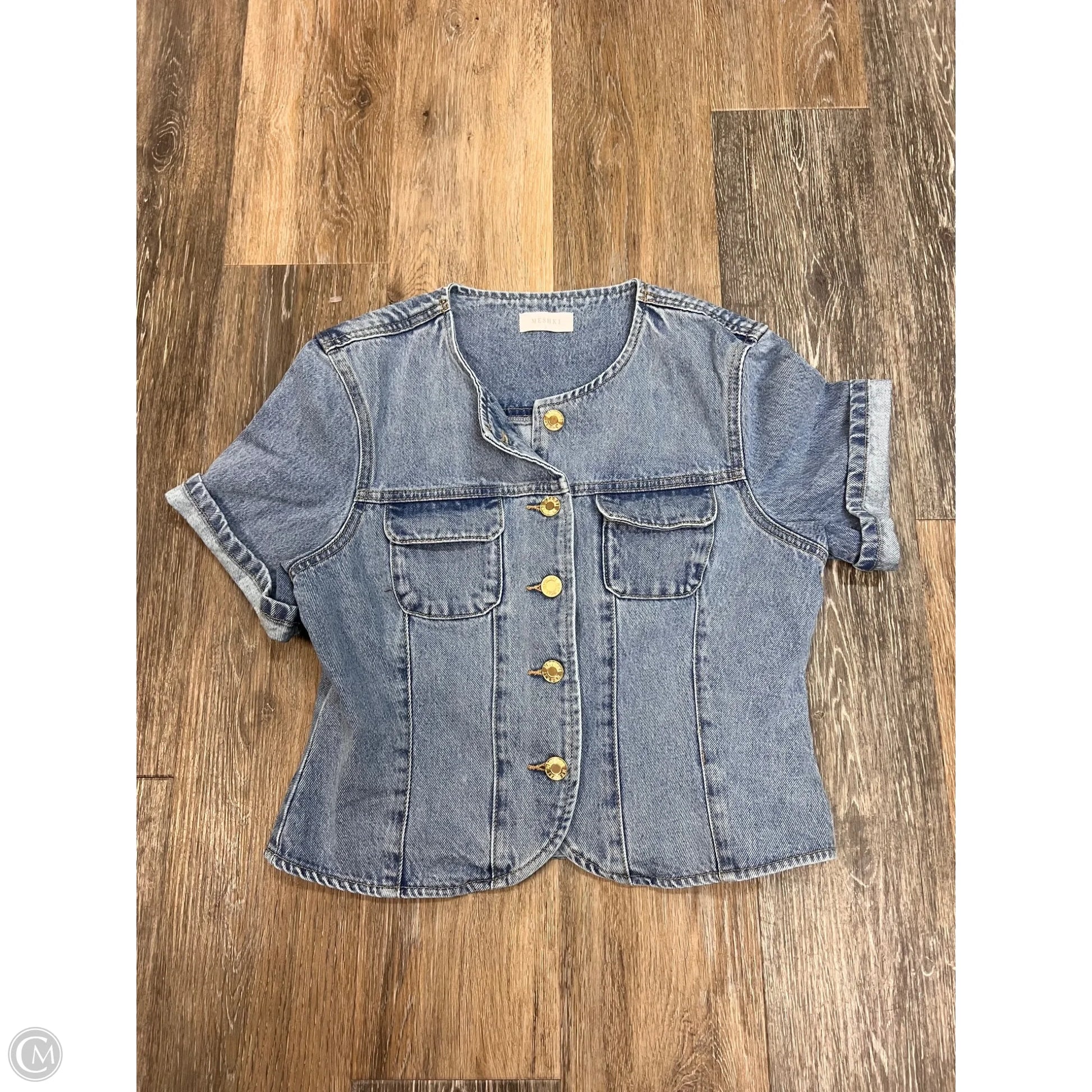 Blouse Short Sleeve By Meshki In Blue Denim, Size: L