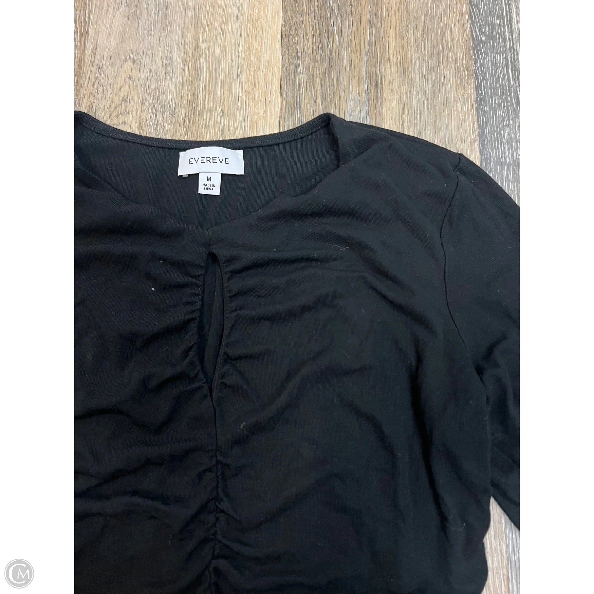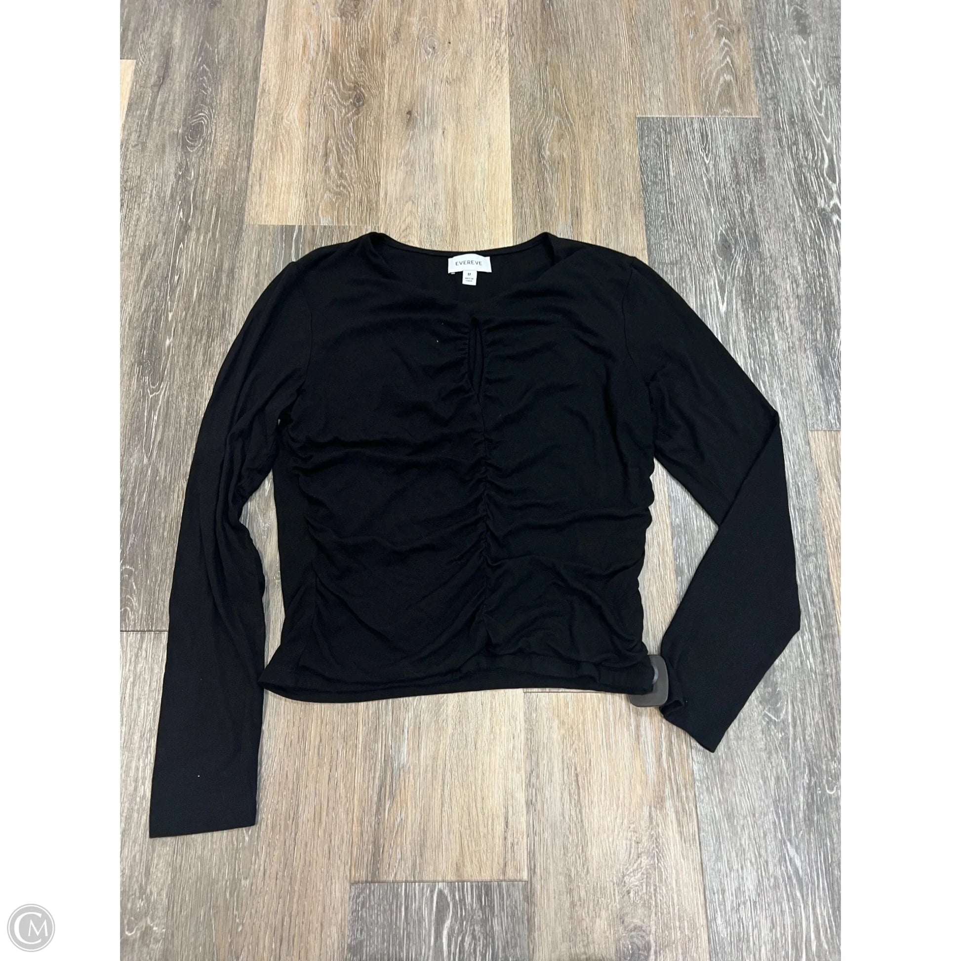 The Top Long Sleeve by Evereve in Black, Size M, offers a sophisticated silhouette with a flattering fit and premium fabric for a chic wardrobe staple.