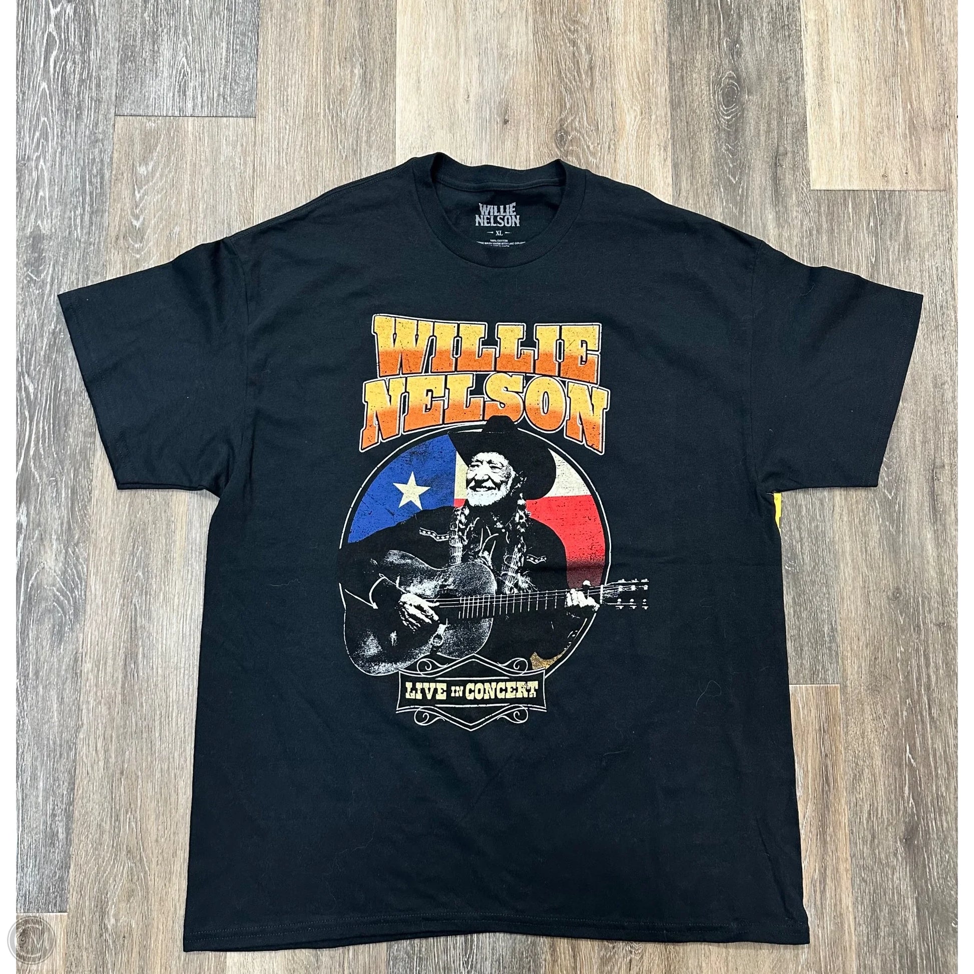 Embrace country vibes with Willie Nelson's black short sleeve top in XL. Feel the music legend's comfort and style.